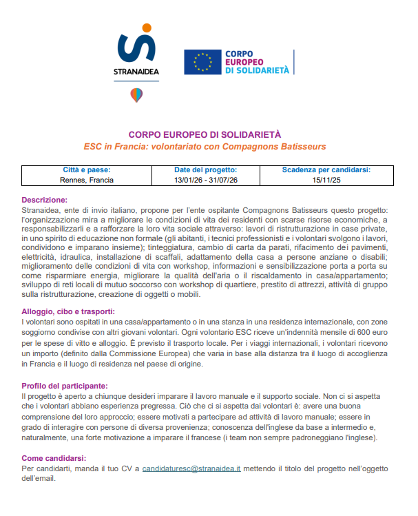 Stranaidea, ente di invio italiano, propone per l’ente ospitante COMPAGNONS BATISSEURS: Malagne