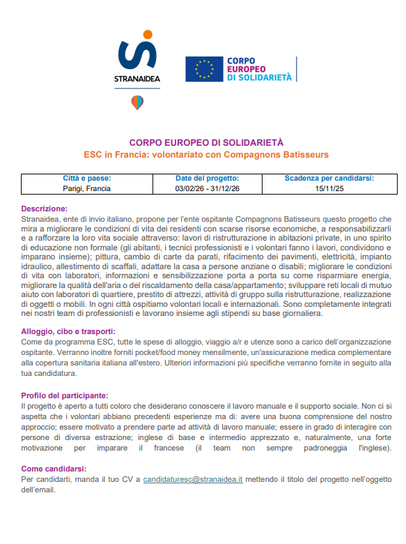 Come candidarsi: inviare il proprio CV con breve lettera di motivazione (specificare profilo, esigenze