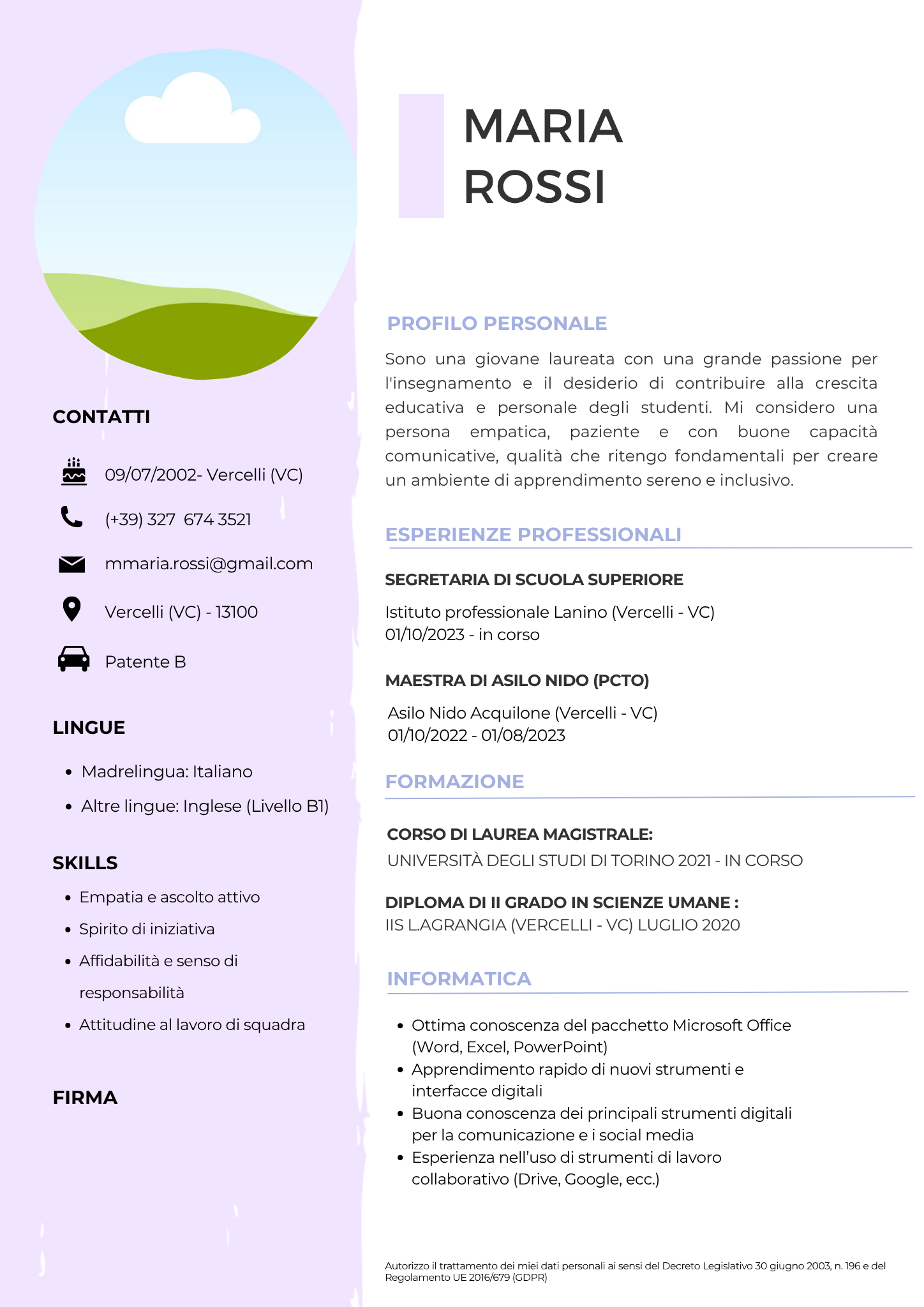 Per avere un confronto vi consigliamo di visitare il sito di Torinogiovani che offre una guida alla stesura del CV.